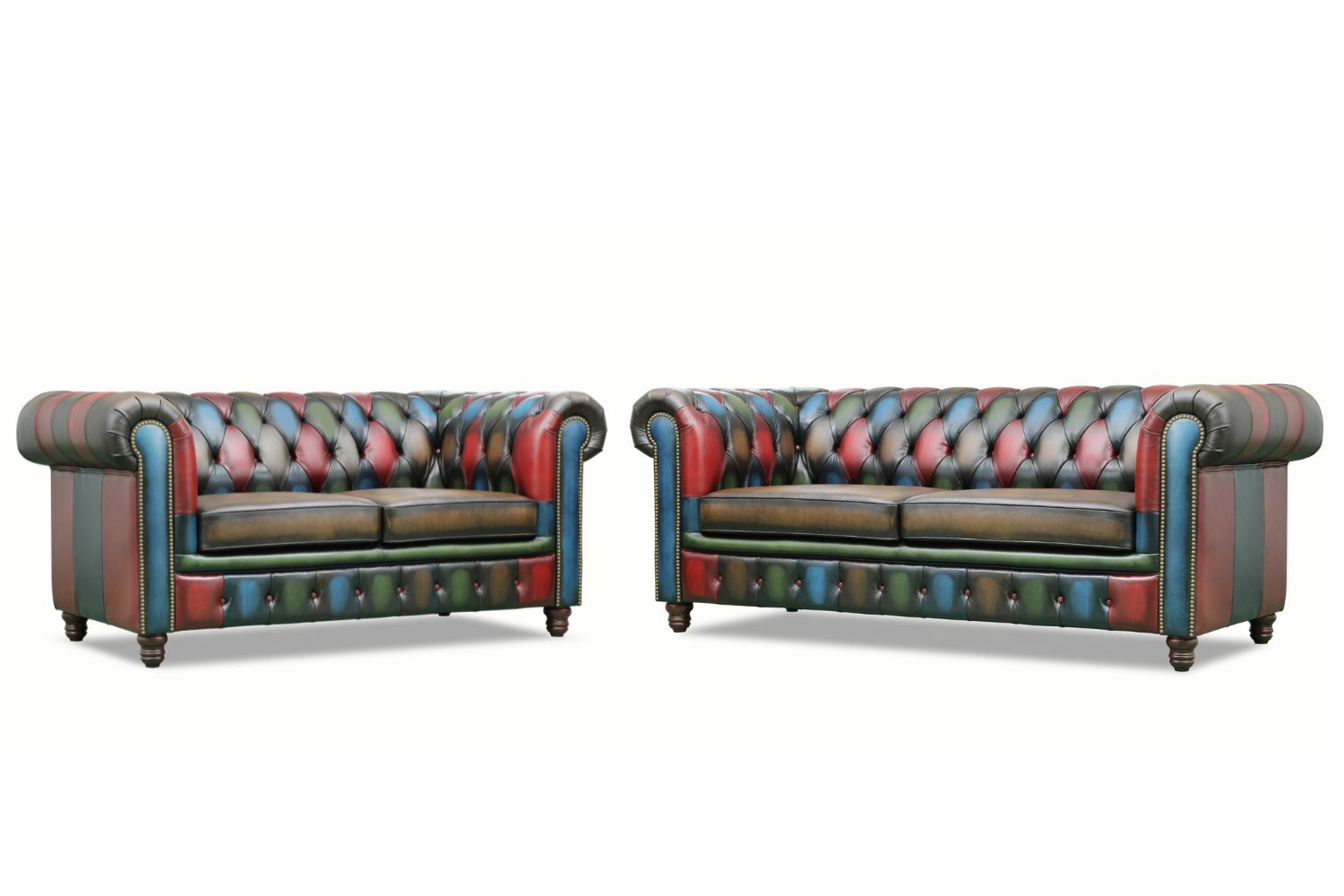 WILLIFORD 100% Genuine Leather Chesterfield Patchwork Sofa Range (Multicolor) - 3+2 Sofa Set