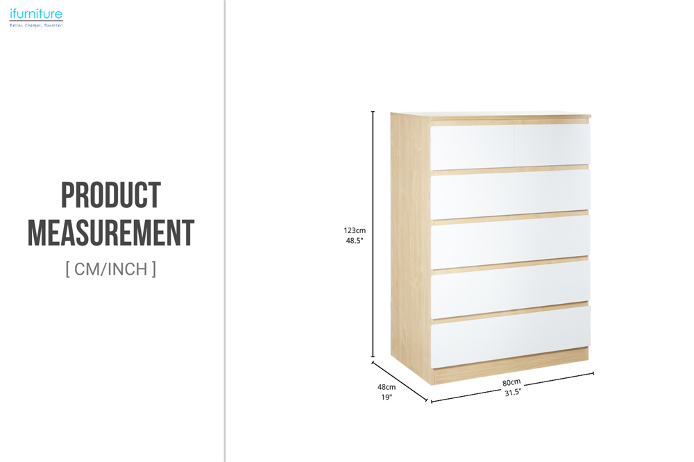 • Modern Oak & White Color Scheme: The warm oak finish combined with crisp white drawer fronts creates a sleek, contemporary look that complements any room decor.