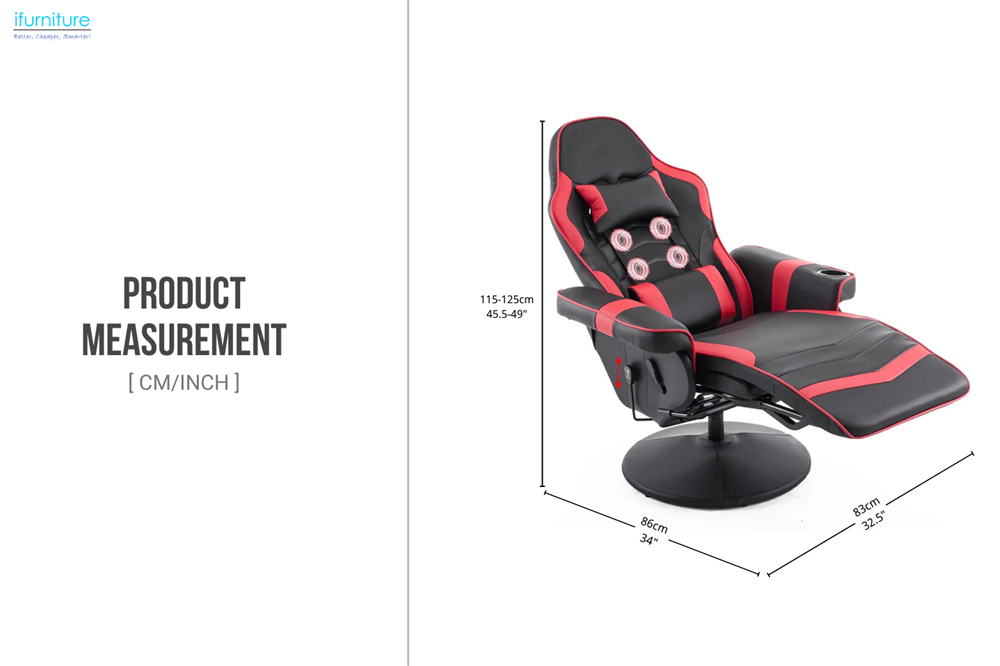 Customizable Massage with Remote Control: This chair features 4 massage points, 8 modes, and adjustable time settings, all controlled by a convenient remote for a personalised relaxation experience.